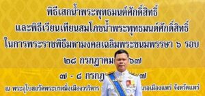 วันอาทิตย์ที่ 7 กรกฎาคม 2567 เวลา 15.00 น. นายพงศ์พิษณุ ชอบประดิษฐ์ ผู้อำนวยการโครงการส่งน้ำและบำรุงรักษาแม่ยม เข้าร่วมพิธีเสกน้ำพระพุทธมนต์ศักดิ์สิทธิ์ เนื่องในโอกาสมหามงคลเฉลิมพระชนมพรรษา 6 รอบ 28 กรกฎาคม 2567 จังหวัดแพร่ เพื่อการประกอบพิธีจัดทำน้ำพระพุทธมนต์ศักดิ์สิทธิ์ งานเฉลิมพระเกียรติพระบาทสมเด็จพระเจ้าอยู่หัวฯ จากแหล่งน้ำศักดิ์สิทธิ์ของจังหวัดแพร่ ทั้ง 4 แหล่งน้ำศักดิ์สิทธิ์ เป็นไปด้วยความเรียบร้อย และสมพระเกียรติยศทุกประการ ณ พระอุโบสถวัดพระบาทมิ่งเมืองวรวิหาร ตำบลในเวียง อำเภอเมืองแพร่ จังหวัดแพร่