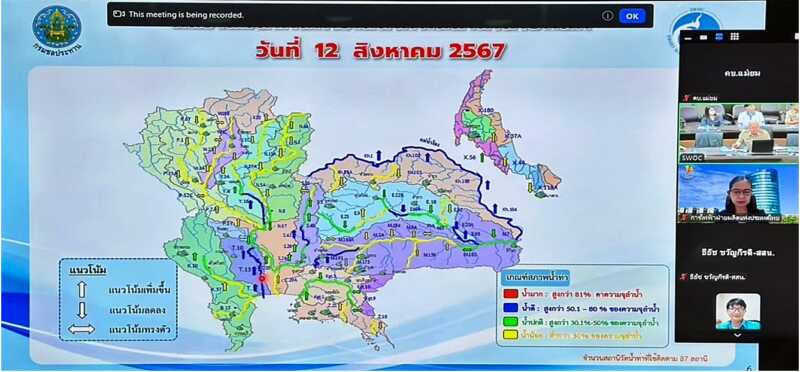 วันอังคารที่ 13 สิงหาคม 2567 เวลา 10.00 น. นายพงศ์พิษณุ ชอบประดิษฐ์ ผู้อำนวยการโครงการส่งน้ำและบำรุงรักษาแม่ยม พร้อมด้วยนายธีระ นาคฉ่ำ หัวหน้าฝ่ายจัดสรรน้ำและปรับปรุงระบบชลประทาน นายพนม จันทร์สุข หัวหน้าฝ่ายช่างกล นายคมกฤช นัยปราโมทย์ หัวหน้าฝ่ายส่งน้ำและบำรุงรักษาที่ 1 นายวัฒนาเกียรติ ชมสวน หัวหน้าฝ่ายส่งน้ำและบำรุงรักษาที่ 3 นางสาวชฎาพร งามเขียว เจ้าพนักงานการเกษตรชำนาญงาน เข้าร่วมประชุมคณะอนุกรรมการติดตามและวิเคราะห์แนวโน้มสถานการณ์น้ำ ในรูปแบบการประชุมทางไกลผ่านระบบเครือข่าย (Video Conference) จากกรมชลประทานสามเสน กรุงเทพฯ มายัง ณ ห้องประชุม 1 ชั้น 3 โครงการส่งน้ำและบำรุงรักษาแม่ยม ตำบลนาจักร อำเภอเมืองแพร่ จังหวัดแพร่ เพื่อติดตามและวิเคราะห์แนวโน้ม สถานการณ์น้ำในปัจจุบัน มีความต่อเนื่อง และทันต่อเหตุการณ์ การนี้ มีการรายงานสภาพภูมิอากาศรวมถึงการรายงานสถานการณ์น้ำฝนทั่วทุกภาคของประเทศไทย ปริมาณน้ำที่จะจัดสรรให้ประชาชน กลุ่มผู้ใช้น้ำ มีปริมาณที่เหมาะสมสำหรับใช้ในการอุปโภค-บริโภค เพื่อวางแผนรับมือสถานการณ์ ที่อาจจะเกิดขึ้นให้สอดคล้องกับนโยบายของ กรมชลประทานที่วางไว้ และลดผลกระทบที่อาจจะเกิดขึ้นกับประชาชน กลุ่มผู้ใช้น้ำในพื้นที่เขตชลประทาน ให้ได้มากที่สุด ตามเป้าหมายที่วางไว้