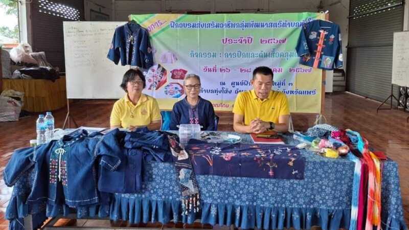 “วชิรพงศ์ โกสิน” นายกเทศมนตรีตำบลทุ่งโฮ้ง เปิดฝึกอบรมการปักและด้นเสื้อคลุมผ้าหม้อห้อมของกลุ่มพัฒนาสตรีตำบลทุ่งโฮ้ง หมู่ที่ 3 ตำบลทุ่งโฮ้ง อำเภอเมืองแพร่ จังหวัดแพร่