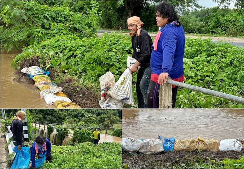 วันอาทิตย์ที่ 1 กันยายน 2567 เวลา 13.00 น. นายพงศ์พิษณุ ชอบประดิษฐ์ ผู้อำนวยการโครงการส่งน้ำและบำรุงรักษาแม่ยม มอบหมายให้นายคมกฤช นัยปราโมทย์ หัวหน้าฝ่ายส่งน้ำและบำรุงรักษาที่ 1 ให้เจ้าหน้าที่ในสังกัด นำกระสอบทรายมากั้นเสริมคันคลองคลอง RMC. บ้านห้วยหม้าย อำเภอสอง จังหวัดแพร่ เพื่อไม่ให้น้ำเอ่อล้นเข้าท่วมพื้นที่เกษตรกรและบ้านเรือนประชาชน ลดผลกระทบในพื้นที่ เนื่องจากมีปริมาณฝนตกหนักมากในพื้นที่ทำให้เกิดน้ำป่าไหลหลากลงลำห้วย และคลอง RMC.