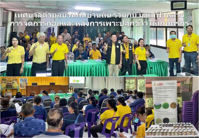 พ.ต.ท.ธงชัย เนื่องพืช นายกเทศมนตรีตำบลบ้านถิ่น พร้อมด้วยคณะผู้บริหารฯ สมาชิกสภาฯ เทศบาลตำบลบ้านถิ่นเปิดการอบรมให้ความรู้ การจัดการก่อนและหลังการเพาะปลูกข้าวให้เกษตรกร” ในโครงการการใช้เทคโนโลยีและนวัตกรรมเพื่อพัฒนาและเพิ่มมูลค่าตลอดโซ่คุณค่าของข้าวในพื้นที่ภาคเหนือตอนบน” โดยมีเจ้าหน้าที่จากมหาวิทยาลัยแม่ฟ้าหลวง เป็นผู้รับผิดชอบดำเนินการจัดกิจกรรม