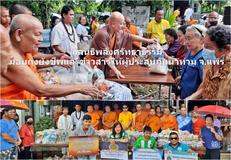 มูลนิธิพลังศรัทธาธรรม มอบถุงยังชีพและข้าวสารให้ผู้ประสบภัยน้ำท่วม จ.แพร่