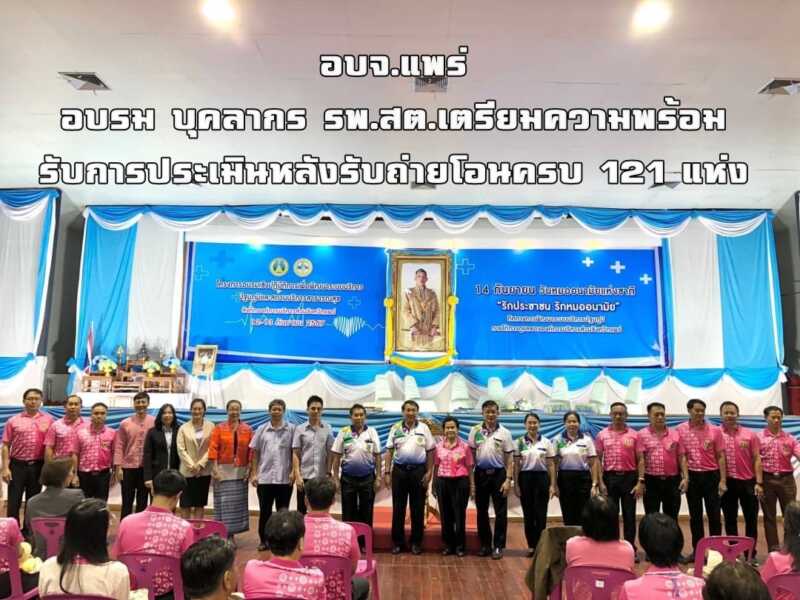 อบจ.แพร่ จัดอบรมบุคลากร รพ.สต.. เพื่อเตรียมความพร้อมรับการตรวจประเมินคุณภาพบริการปฐมภูมิ ในปีงบประมาณ 2568 หลังจากได้รับการถ่ายโอนโรงพยาบาลส่งเสริมสุขภาพตำบลและหน่วยบริการ 121 แห่ง ครบ 100 เปอร์เซ็นต์ เมื่อปีงบประมาณ 2567