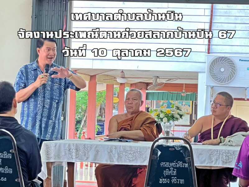 วันที่ 14 กันยายน 2567 เวลา 09.30 น. นายสมศักดิ์ วงศ์หลวง นายกเทศมนตรีตำบลบ้านปิน พร้อมด้วยนายสายันห์ กาวีเปิบ รองนายกเทศมนตรีฯ นางสาวรังสินี ภุมมะภูติ เลขานุการนายกเทศมนตรีฯ นางวาสนา หม่องนันท์ ที่ปรึกษานายกเทศมนตรีฯ และสมาชิกสภาเทศบาลตำบลบ้านปิน ร่วมกับท่านพระครูนิวิฐจิตสังวร เจ้าอาวาสวัดโพธิบุปผาราม ท่านพระครูโสภิตโพธานุรักษ์ สจฺวโรภิกขุ รองเจ้าอาวาสวัดโพธิบุปผาราม และคณะกรรมการวัดฯ ประชุมเพื่อหารือแนวทางในการจัดงานประเพณีตานก๋วยสลากบ้านปิน ประจำปี 2567 ณ ศาลาการเปรียญ วัดโพธิบุปผาราม ตำบลบ้านปิน อำเภอลอง จังหวัดแพร่ ซึ่งมีกำหนดจัดขึ้นในวันที่ 10 ตุลาคม 2567