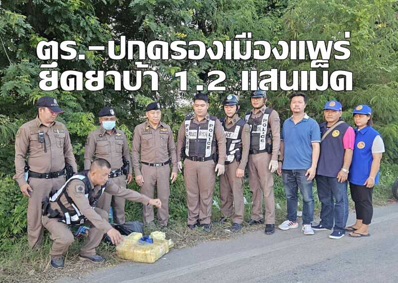 ตร.สภ.เมืองแพร่ ร่วมกับฝ่ายปกครองอำเภอเมืองแพร่ ยึดยาบ้า 1.2 แสนเม็ดที่ซ่อนอยู่ในพงหญ้า ริมถนนสายแพร่-ร้องกวาง คาดขบวนการค้ายาบ้านำมาซ่อนไว้ให้ทีมอีกชุดมารับช่วงขนส่งต่อให้ลูกค้าเพื่อเลี่ยงการถูกติดตามจับกุมของเจ้าหน้าที่
