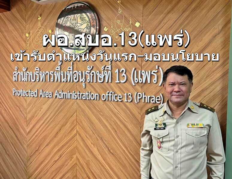 นายกรัณย์พล แสงทอง ผู้อำนวยการสำนักบริหารพื้นที่อนุรักษ์ที่ 13 เข้ารับตำแหน่งเป็นวันแรก มีการประชุมเพื่อมอบหมายงานและนำเสนอภาระกิจของแต่ละส่วนให้ให้ ผู้อำนวยการสำนักบริหารพื้นที่อนุรักษ์ที่ 13 (แพร่)และมอบนโยบาย