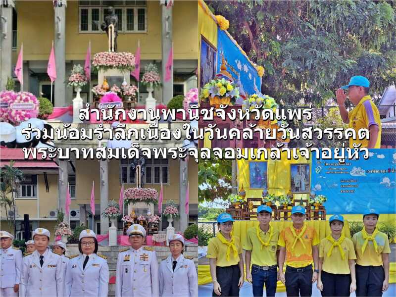 วันพุธที่ 23 ตุลาคม 2567 เวลา 07.30 น. นายชุติเดช มีจันทร์ ผู้ว่าราชการจังหวัดแพร่ เป็นประธานประกอบพิธีวันกิจกรรมน้อมรำลึกเนื่องในวันคล้ายวันสวรรคต พระบาทสมเด็จพระจุลจอมเกล้าเจ้าอยู่หัว พร้อมด้วย ศาล ทหาร ตำรวจ ข้าราชการและพสกนิกรทุกหมู่เหล่าเข้าร่วมพิธี ฯลฯ