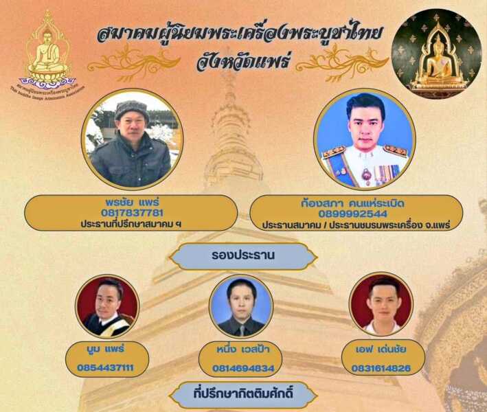 “สมาคมผู้นิยมพระเครื่องพระบูชาไทยจังหวัดแพร่” รายชื่อคณะกรรมการบริหาร- “เอกแพร่” รับเช่า ให้เช่าพระเครื่อง พระบูชา พระคณาจารย์ทั่วไป ด้วยเงินสดราคาสูง