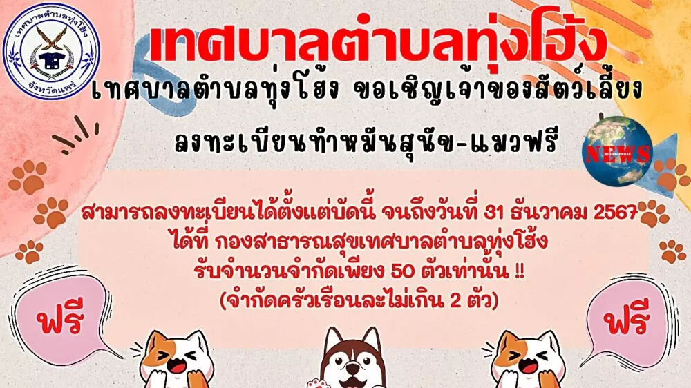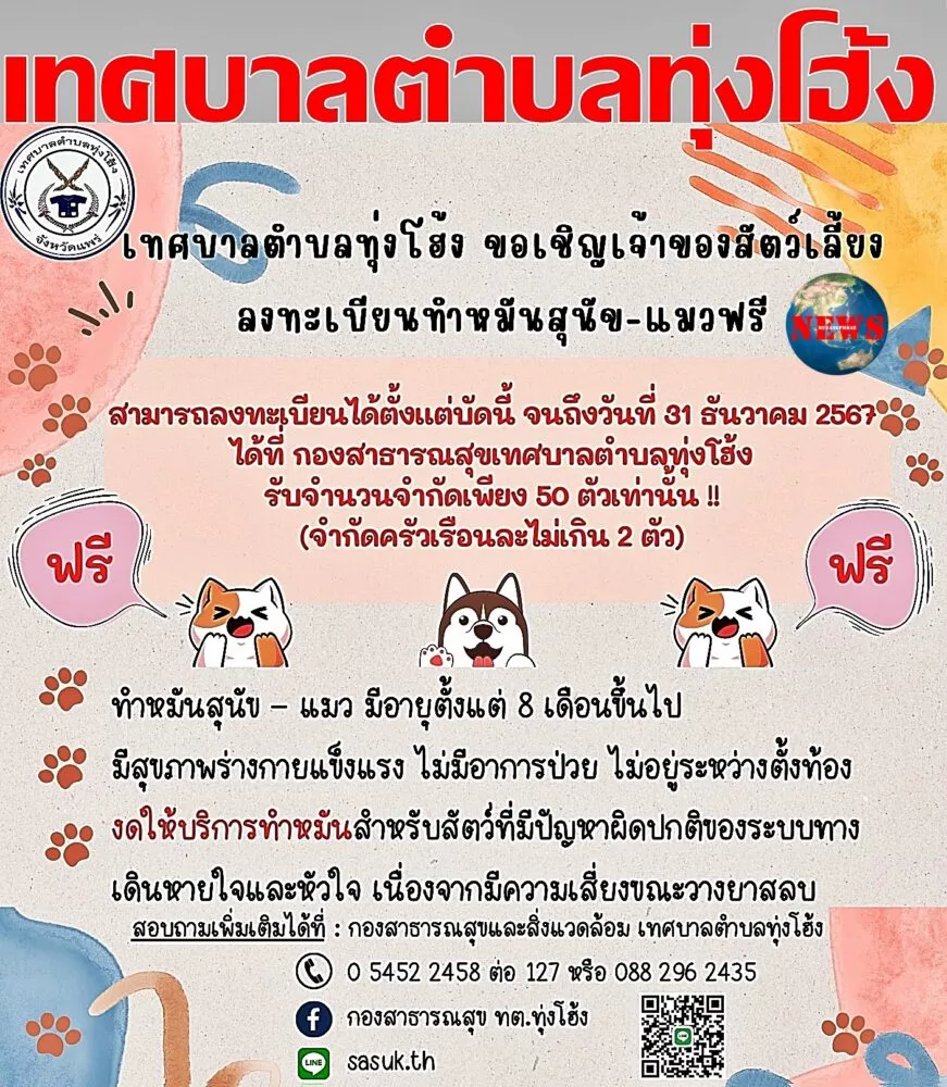 การเมืองสังคม กองสาธารณสุขและสิ่งแวดล้อม เทศบาลตำบลทุ่งโฮ้ง ขอเชิญเจ้าของสัตว์เลี้ยง ลงทะเบียนทำหมันสุนัข-แมว ฟรี พฤศจิกายน 20, 2024 admin Facebook iconFacebookLINE iconLine Post Views: 214 กองสาธารณสุขและสิ่งแวดล้อม เทศบาลตำบลทุ่งโฮ้ง ขอเชิญเจ้าของสัตว์เลี้ยง ลงทะเบียนทำหมันสุนัข-แมว ฟรี สามารถลงทะเบียนได้ตั้งแต่บัดนี้ จนถึงวันที่ 31 ธันวาคม 2567 ได้ที่กองสาธารณสุขและสิ่งแวดล้อม เทศบาลตำบลทุ่งโฮ้ง รับจำนวนจำกัดเพียง 50 ตัวเท่านั้น (จำกัดครัวเรือนละไม่เกิน 2 ตัว) สอบถามรายละเอียดเพิ่มเติมที่เบอร์ 054-522458 ต่อ 127 หรือ 0882962435 ในวันและเวลาราชการเท่านั้น
