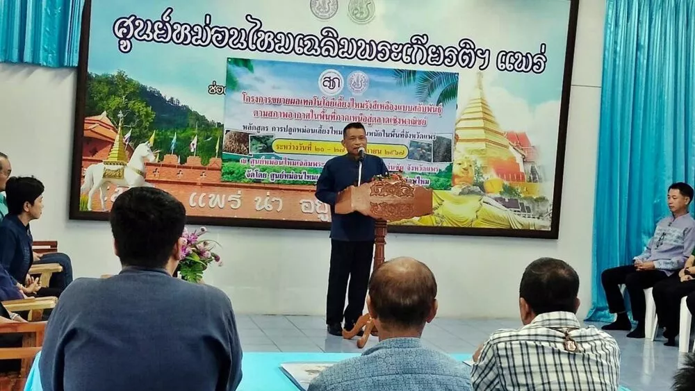 วันพฤหัสบดีที่ 21 พฤศจิกายน 2567 เวลา 09.30 น. นายพงศ์พิษณุ ชอบประดิษฐ์ ผู้อำนวยการโครงการส่งน้ำและบำรุงรักษาแม่ยม มอบหมายให้นางสาวชฎาพร งามเขียว เจ้าพนักงานการเกษตรชำนาญงาน เข้าร่วมพิธีเปิดการฝึกอบรมเกษตรกร หลักสูตรการปลูกหม่อนเลี้ยงไหมแบบเน้นหนักในพื้นที่จังหวัดแพร่ เพื่อสร้างอาชีพเสริมและอาชีพใหม่ในการเลี้ยงไหม ให้มีความยั่งยืนและเป็นมิตรกับสิ่งแวดล้อมใช้ประโยชน์จากทรัพยากรธรรมชาติในพื้นที่อย่างมีประสิทธิภาพ เพื่อสร้างขวัญกำลังใจให้แก่เกษตรกรในการเริ่มต้นอาชีพการปลูกหม่อนเลี้ยงไหมในจังหวัดแพร่ ณ ศูนย์หม่อนไหมเฉลิมพระเกียรติจังหวัดแพร่ อำเภอเด่นชัย จังหวัดแพร่