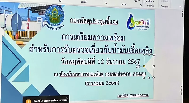 วันพฤหัสบดีที่ 12 ธันวาคม 2567 เวลา 09.00 น. นายพงศ์พิษณุ ชอบประดิษฐ์ ผู้อำนวยการโครงการส่งน้ำและบำรุงรักษาแม่ยม มอบหมายให้นายพนม จันทร์สุข หัวหน้าฝ่ายช่างกล นายคมกฤช นัยปราโมทย์ หัวหน้าฝ่ายส่งน้ำและบำรุงรักษาที่ 1 นางพัชราภรณ์ แก้วบาง หัวหน้างานการเงินและบัญชี และเจ้าหน้าที่ผู้เกี่ยวข้อง เข้าร่วมประชุมรับฟังคำชี้แจงการเตรียมความพร้อมสำหรับการรับตรวจเกี่ยวกับน้ำมันเชื้อเพลิง ผ่านระบบ Zoom meeting เพื่อรับทราบแนวทางและการเตรียมความพร้อมสำหรับการเข้าตรวจสอบ ค่าน้ำมันเชื้อเพลิงของสำนักงานการตรวจเงินแผ่นดินในปีงบประมาณ พ.ศ.2568 ณ ห้องประชุม 1 ชั้น 3 โครงการส่งน้ำและบำรุงรักษาแม่ยม ตำบลนาจักร อำเภอเมืองแพร่ จังหวัดแพร่
