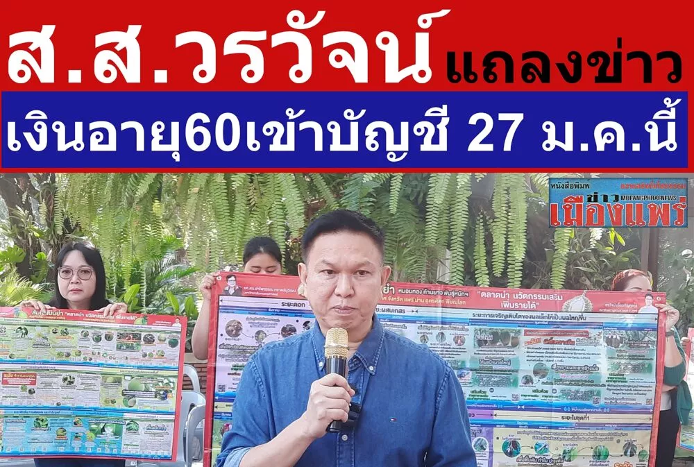 นายวรวัจน์ เอื้ออภิญกุล กล่าวว่า สืบเนื่องจากมีการมีคนถามว่าเงิน 10,000 บาทที่จะโอนให้กับผู้มีอายุเกิน 60 ปี ว่าจะได้วันไหน ขอแจ้งให้ทราบว่าในวันที่ 27 มกราคม 2568 เงิน10,000 บาทจะมีการ โอนเข้าบัญชีสำหรับผู้ที่สมัคร แอพทางรัฐ เอาไว้แล้ว เงินจะเข้าบัญชีตั้งแต่หลังเที่ยงคืน ให้ดูบัญชีได้เลย หากท่านใดที่ไม่ได้ผูกบัญชีกับพร้อมเพย์ต้องเร่งผูก แต่ละท้องที่ ท้องถิ่นขอช่วยอำนวยความสะดวกให้กับพี่น้องประชาชนด้วย เพราะว่าครั้งที่แล้วเราพบว่ามีพี่น้องประชาชนรอมากดเงินอยู่แต่ไม่มีที่นั่งไม่มีที่อยู่ ก็อยากให้จังหวัดแพร่ อำนวยความสะดวกให้มากขึ้น