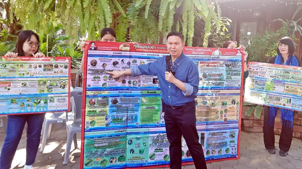 นายวรวัจน์ เอื้ออภิญญกุล กล่าวอีกว่า ในส่วนการส่งเสริมการปลูกผลไม้มีค่า ได้ร่วมกับ ดร.อำไพวรรณ ภราดร์นุวัฒน์ มหาวิทยาลัยเกษตรศาสตร์ ที่ได้ให้ข้อมูลการปลูกต้นไม้คุณภาพให้กับพี่น้องประชาชน เราได้อบรมไปหลายรอบแล้ว เรามีแอพลิเคชั่นบอกรายละเอียดในการปลูก และจะมีการแจกพันธ์ทุเรียน มีทุเรียน ส้มโอ ส้มเขียวหวาน ลำไย พุททราตามมาด้วย ทับทิมสยาม มะม่วง ทางรัฐบาลต้องการให้ทุกคนขายผลไม้ได้ เอาเข้าห้างส่งไปต่างประเทศได้ในราคาที่สูง วันนี้อยากจะแจ้งว่าหลังจากอบรมถ่ายทอดความรู้แล้วก็ขอให้นำไปปฏิบัติด้วย เราจะมีการส่งข้อมูลให้ว่าเดือนนี้มกราคมนี้พืชตัวไหนอยู่ในระยะอะไรให้กับพี่น้องประชาชน ก็ขอให้สื่อมวลชนแจ้งข่าวกระตุ้นเตือน เพื่อเราจะมีผลไม้ที่มีคุณภาพขายได้ในราคาที่สูง