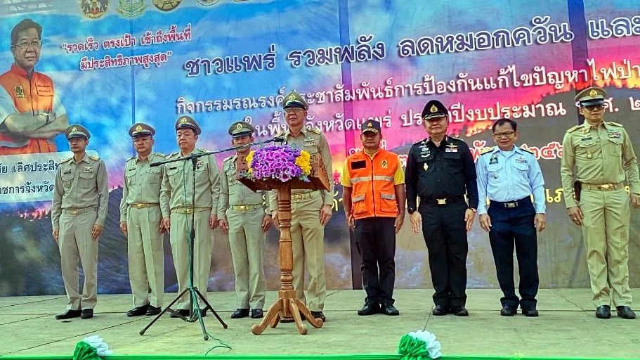 วันจันทร์ที่ 3 กุมภาพันธ์ 2568 เวลา 07.30 น. นายพงศ์พิษณุ ชอบประดิษฐ์ ผู้อำนวยการโครงการส่งน้ำและบำรุงรักษาแม่ยม มอบหมายให้นายธีระ นาคฉ่ำ หัวหน้าฝ่ายจัดสรรน้ำและปรับปรุงระบบชลประทาน ให้นายกิตติศักดิ์ จากภัย นายช่างชลประทาน และเจ้าหน้าที่ในสังกัด ร่วมกิจกรรมรณรงค์ ประชาสัมพันธ์เพื่อป้องกันและแก้ไขปัญหาไฟป่า หมอกควัน และฝุ่นละอองขนาดเล็ก (PM2.5) จังหวัดแพร่ ประจำปี 2568 ณ สถาบันนวัตกรรมด้านป่าไม้จังหวัดแพร่ อำเภอเมืองแพร่ จังหวัดแพร่ โดยมีนายสมชัย เลิศประสิทธิพันธ์ ผู้ว่าราชการจังหวัดแพร่ เป็นประธาน