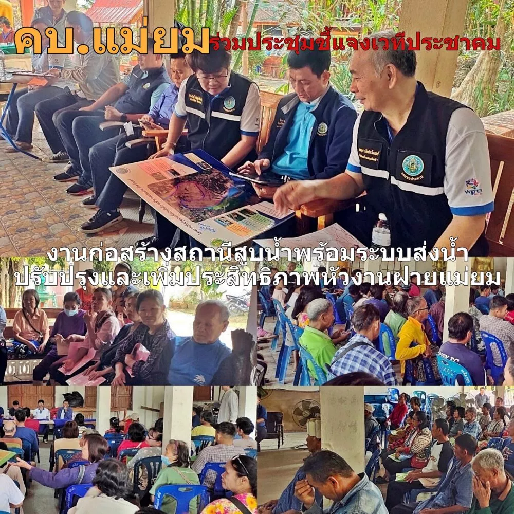 คบ.แม่ยม ร่วมประชุมชี้แจงเวทีประชาคม งานก่อสร้างสถานีสูบน้ำพร้อมระบบส่งน้ำ หัวงานฝายแม่ยม