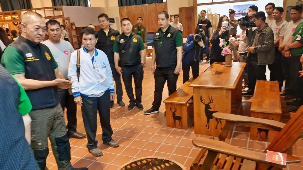 วันที่ 21 กุมภาพันธ์ 2568 เวลา 17.00 น.นายเฉลิมชัย ศรีอ่อน รัฐมนตรีกระทรวงทรัพยากรธรรมชาติและสิ่งแวดล้อม เดินทางมาตรวจราชการ ที่ ส่วนพัฒนาธุรกิจและอุตสาหกรรมไม้(โรงเลื่อยร้องกวาง)องค์การอุตสาหกรรมป่าไม้ภาคเหนือตอนบน อ.ร้องกวาง จ.แพร่ เพื่อมอบนโยบายและแนวทางการพัฒนาฯ แล้วเยี่ยมชมภารกิจของโรงเลื่อยร้องกวาง และเยี่ยมชมโชว์รูมแสดงผลิตภัณฑ์ไม้ องค์การอุตสาหกรรมป่าไม้ภาคเหนือตอนบน มีนายจตุพร บุรุษพัฒน์ ปลัดกระทรวงทรัพย์ฯ นายสุรชัย อจลบุญ อธิบดีกรมป่าไม้ เจ้าหน้าที่สังกัดกระทรวงทรัพย์ฯ ร่วมต้อนรับ