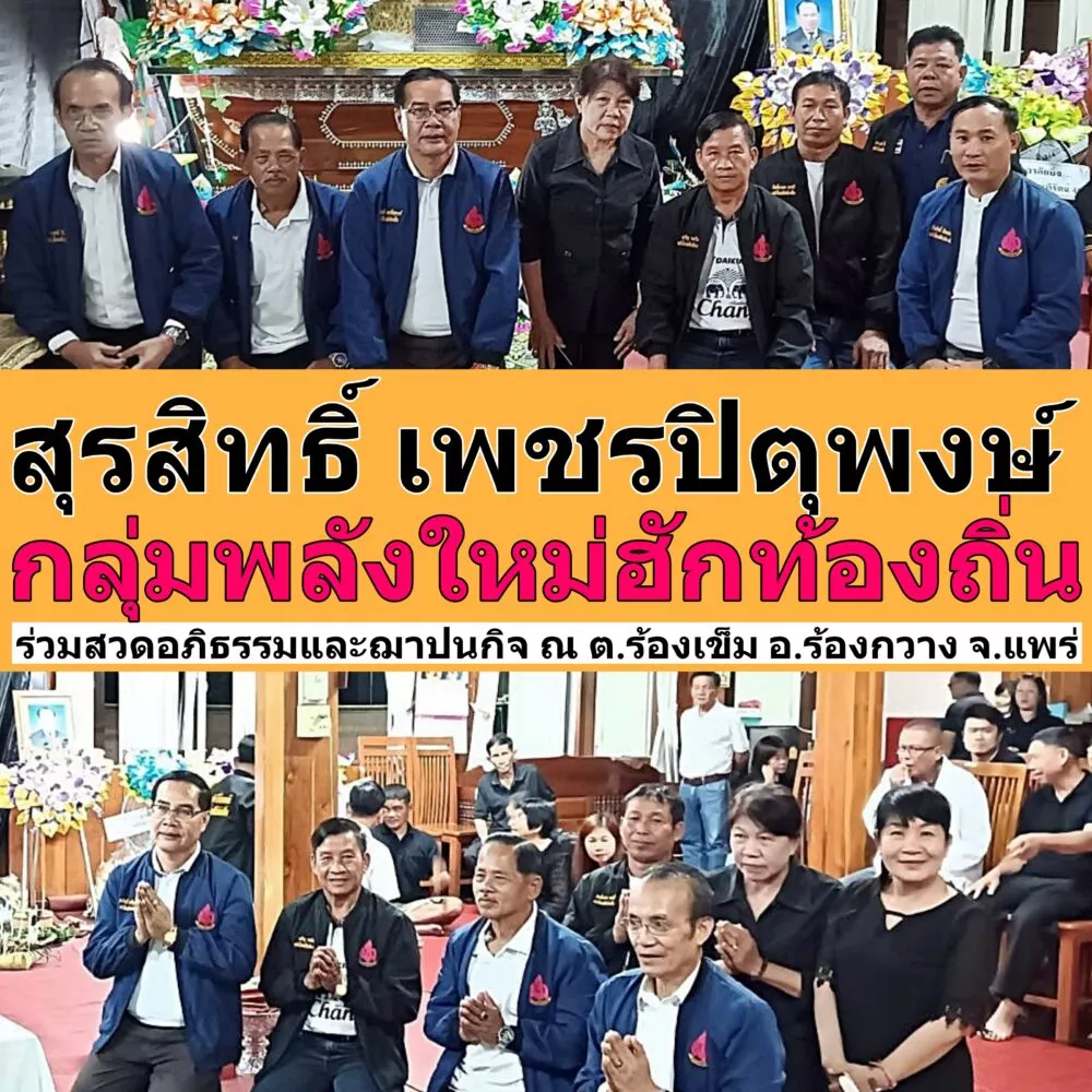 การเมืองสังคม “กลุ่มพลังใหม่ฮักท้องถิ่น” ร่วมพิธีสวดอภิธรรม และฌาปนกิจศพ ณ ตำบลร้องเข็ม อำเภอร้องกวาง จังหวัดแพร่ กุมภาพันธ์ 24, 2025 admin Facebook iconFacebookLINE iconLine Post Views: 591 นายสุรสิทธิ์ เพชรปิตุพงษ์ นำ”กลุ่มพลังใหม่ฮักท้องถิ่น” ร่วมพิธีสวดอภิธรม และฌาปนกิจ ณ ตำบลร้องเข็ม อำเภอร้องกวาง จังหวัดแพร่ วันที่ 23-24 กุมถภาพันธ์ 2568 นายสุรสิทธิ์ เพชรปิตุพงษ์ นำ”กลุ่มพลังใหม่ฮักท้องถิ่น” ร่วมพิธีสวดอภิธรรม และฌาปนกิจศพนายสงคราม โนรินทร์ อายุ 69 ปี บ้านร้องเข็ม หมู่ 1 ตำบลร้องเข็ม อำเภอร้องกวาง จังหวัดแพร่