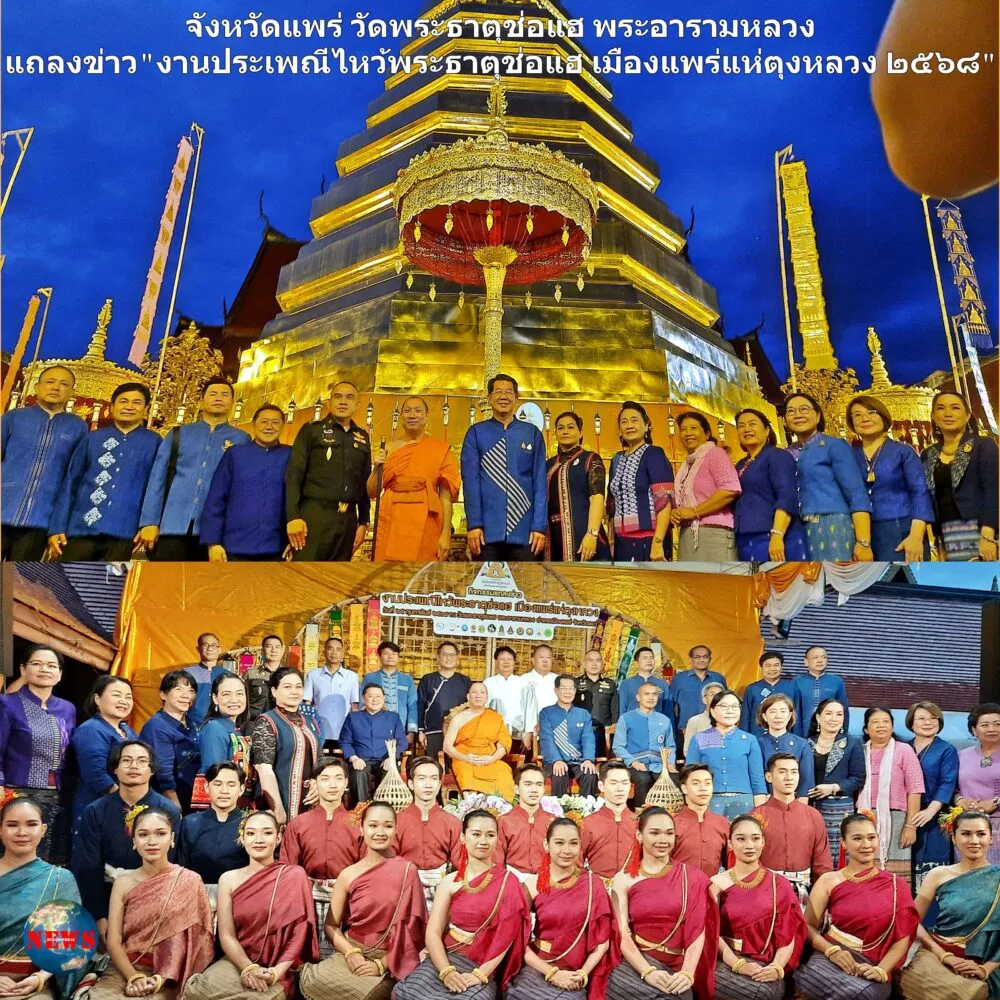 ผู้สื่อข่าว รายงานว่า เมื่อวันที่ 25 กุมภาพันธ์ 2568 เวลา 17.00 น.ณ วัดพระธาตุช่อแฮ ต.ช่อแฮ อ.เมือง จ.แพร่ จังหวัดแพร่ ร่วมกับวัดพระธาตุช่อแฮ พระอารามหลวง ได้จัดงานแถลงข่าว “งานประเพณีไหว้พระธาตุช่อแฮ เมืองแพร่แห่ตุงหลวง 2568” ที่กำหนดจัดในวันที่ 5-13 มีนาคม 2568 มี พระโกศัยเจติยารักษ์ รองเจ้าคณะจังหวัดแพร่ และเจ้าอาวาสวัดช่อแฮ พระอารามหลวง เป็นประธานฝ่ายสงฆ์ นายสมชัย เลิศประสิทธิพันธ์ ผู้ว่าราชการจังหวัดแพร่ เป็นประธานฝ่ายฆราวาส ร่วมกับหน่วยงาน และภาคส่วนที่เกี่ยวข้อง ร่วมในพิธีแถลงข่าว