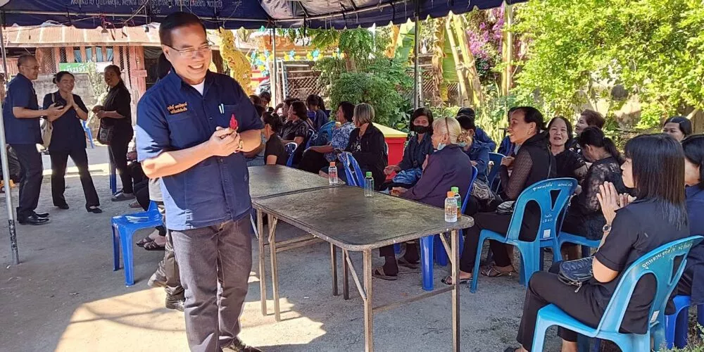 นายสุรสิทธิ์ เพชรปิตุพงษ์ นำ “กลุ่มพลังใหม่ฮักท้องถิ่น” ร่วมพบพี่น้องประชาชน ในงานทำบุญกุศลศพนางมาลัย บางแดง บ้านวังโป่ง หมู่ 5 ตำบลร้องกวาง อำเภอร้องกวาง จังหวัดแพร่ และมอบหมายให้ตัวแทนกลุ่มร่วมฌาปนกิจ ณ ฌาปนสถานบ้านวังโป่งตำบลร้องกวาง