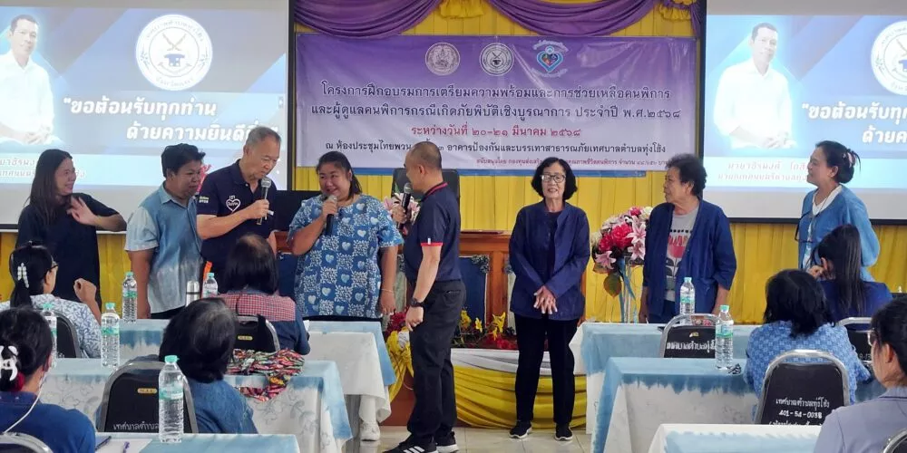 เทศบาลตำบลทุ่งโฮ้ง จัดโครงการฝึกอบรมการเตรียมความพร้อมและการช่วยเหลือคนพิการและผู้ดูแลคนพิการกรณีเกิดภัยพิบัติเชิงบูรณาการ ประจำปี พ.ศ. 2568