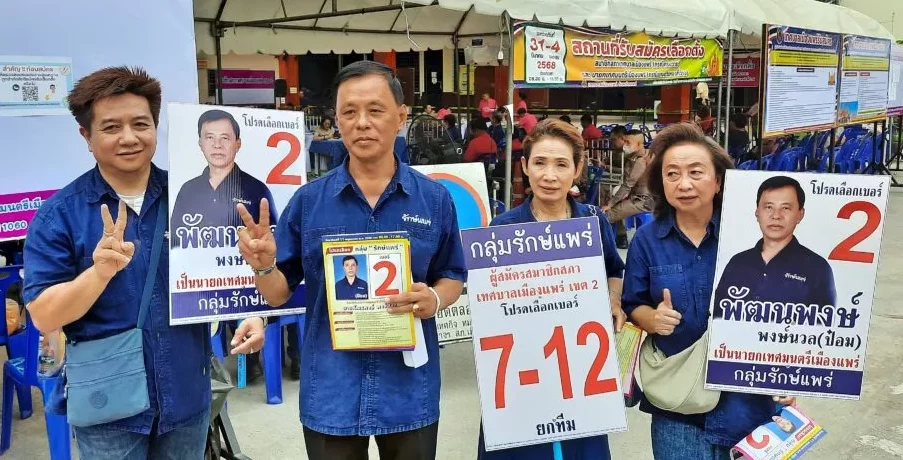 อ.เด่นชัย ผู้สมัครนายกเทศมนตรีตำบลเด่นชัย นายดำรงเกียรติ กิตติประภัสร์(อดีตนายกเทศมนตรีตำบลเด่นชัย), ผู้สมัครรับเลือกตั้งเป็นนายกเทศมนตรีตำบลปงป่าหวาย นายชัยชาญ มีมาก และนายประยูร กำยาน