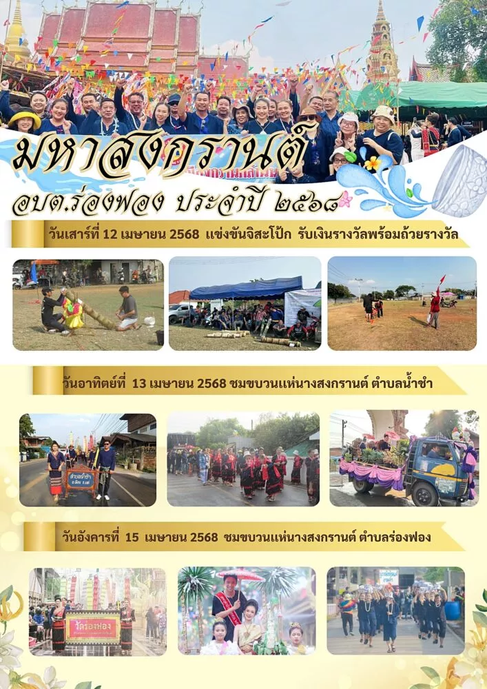 การเมืองสังคม อบต.ร่องฟองตั้งด่านชุมชน ต.ร่องฟอง-ต.น้ำชำ จัดงานมหาสงกรานต์ ๑๒-๑๓-๑๕ เม.ย. ๖๘ เมษายน 11, 2025 admin Facebook iconFacebookLINE iconLine Post Views: 365 นายชัยตุรงค์ วงศ์ศักดิ์สิทธิ์ นายกองค์การบริหารส่วนตำบลร่องฟอง เปิดด่านชุมชนในช่วงเทศกาลสงกรานต์ของ ตำบลร่องฟอง-ตำบลน้ำชำ และอบต.ร่องฟอง จัดงานมหาสงกรานต์ ในวันที่ 12 -13 และ 15 เมษายน 2568 วันที่ 11 เมษายน 2568 นายชัยตุรงค์ วงศ์ศักดิ์สิทธิ์ นายกองค์การบริหารส่วนตำบลร่องฟอง เป็นประธานเปิดด่านชุมชนในช่วงเทศกาลสงกรานต์ของตำบลร่องฟองและตำบลน้ำชำ โดยการดำเนินงานป้องกันและลดอุบัติเหตุทางถนนช่วงเทศกาลสงกรานต์ พ.ศ.2568 ห้วงระหว่างวันที่ 11 ถึงวันที่ 17 เมษายน 2568 ภายใต้การรณรงค์ “ขับขี่ปลอดภัย เมืองไทยไร้อุบัติเหตุ” อบต.ร่องฟอง จัดกิจกรรมส่งเสริมการท่องเที่ยว และส่งเสริมวัฒนธรรมประเพณีท้องถิ่น จัดงานมหาสงกรานต์ ในวันที่ 12 -13 และ 15 เมษายน 2568