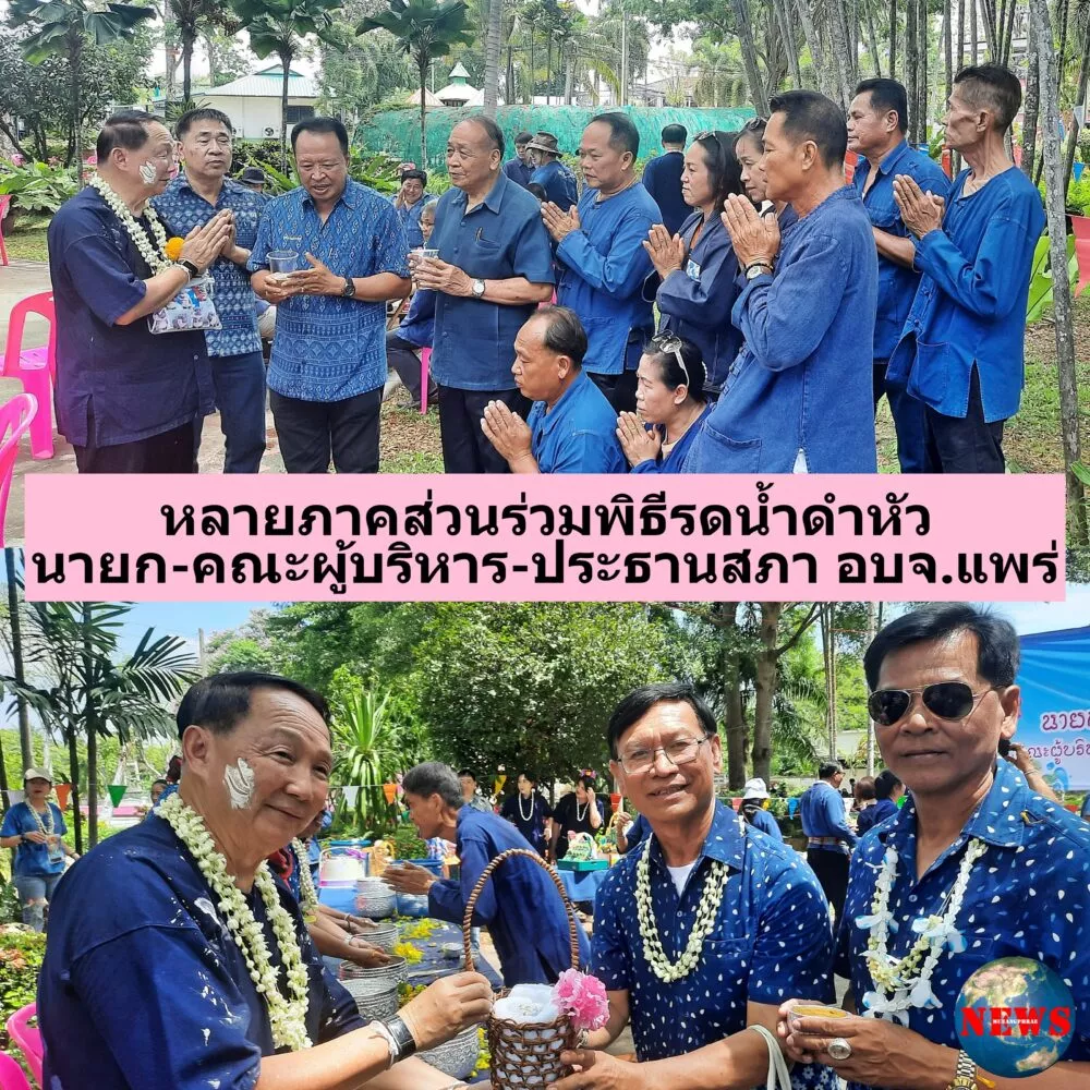 วันที่ 17 เมษายน 2568  เวลา 10.30 น.หลายภาคส่วนมาพร้อมเพรียงกันและเริ่มพิธีรดน้ำดำหัวและขอพรจากคณะผู้บริหาร อบจ.แพร่ ประกอบด้วย นายอนุวัธ วงศ์วรรณ นายก อบจ.แพร่ นายพิภพ ถานะวุฒิพงศ์ รองนายก อบจ.แพร่ นายวิตติ แสงสุพรรณ รองนายก อบจ.แพร่ นายเสรี ทรงศักดิ์ เลขานุการนายก อบจ.แพร่ นางสาวสุรีย์ ทาประเสริฐ เลขานุการนายก อบจ.แพร่ นายจักริน เป็นบุญ เลขานุการนายก อบจ.แพร่ และนายวังสาคร หมั่นขีด ประธานสภา อบจ.แพร่ เนื่องในโอกาสปีใหม่เมือง 2568