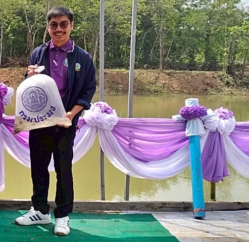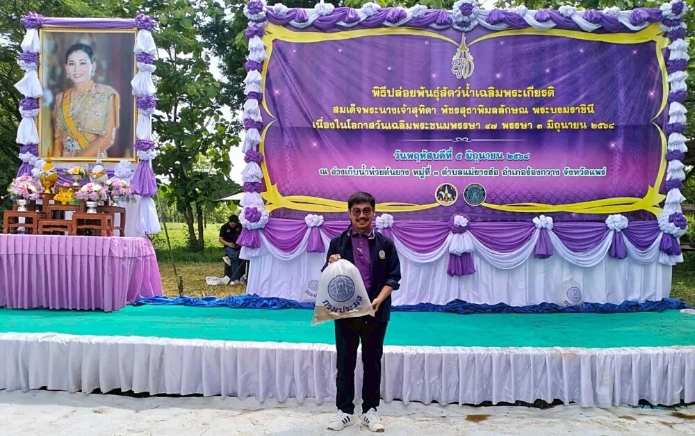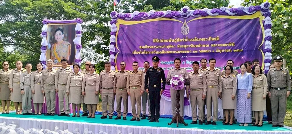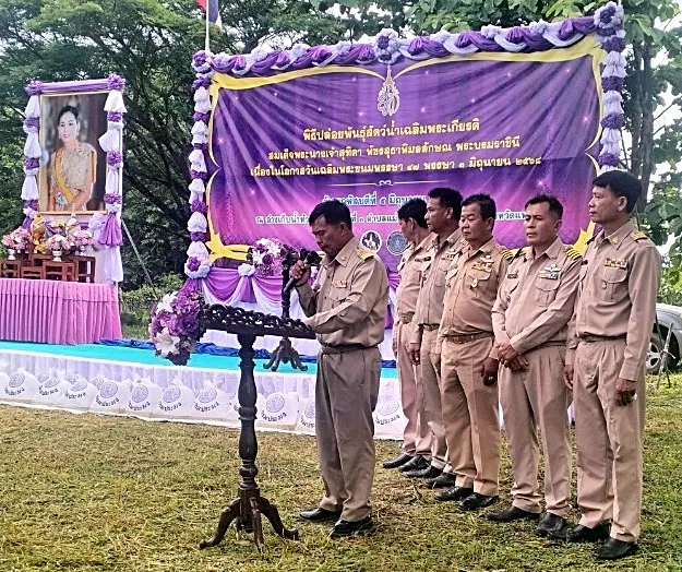 นายวิโรจน์ พวงทอง หัวหน้าฝ่ายส่งน้ำและบำรุงรักษาที่ 2 ร่วมพิธีปล่อยพันธุ์สัตว์น้ำเนื่องในวันเฉลิมพระชนมพรรษาสมเด็จพระนางเจ้าสุทิดา พัชรสุธาพิมลลักษณ พระบรมราชินี และมอบหมายให้