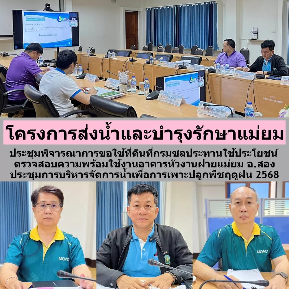 วันพฤหัสบดีที่ 5 มิถุนายน 2568 เวลา 13.30 น. นายพงศ์พิษณุ ชอบประดิษฐ์ ผู้อำนวยการโครงการส่งน้ำและบำรุงรักษาแม่ยม มอบหมายให้นายธีระ นาคฉ่ำ หัวหน้าฝ่ายจัดสรรน้ำและปรับปรุงระบบชลประทาน หัวหน้าฝ่ายส่งน้ำและบำรุงรักษาที่ 1-4 และเจ้าหน้าที่ผู้เกี่ยวข้อง เข้าร่วมประชุมคณะทำงานพิจารณาการขอใช้ที่ราชพัสดุและที่ดินของรัฐประเภทอื่นที่กรมชลประทานใช้ประโยชน์ ในพื้นที่รับผิดชอบสำนักงานชลประทานที่ 4 ครั้งที่ 3/2568