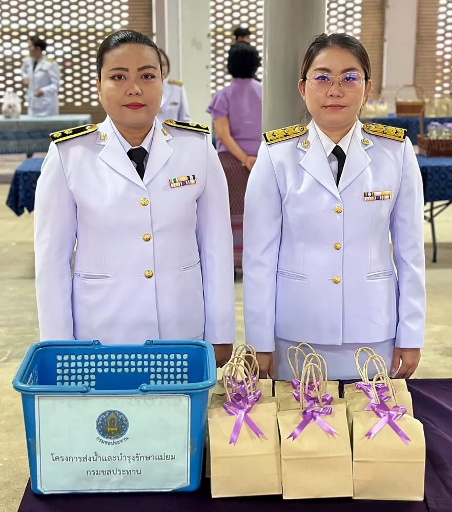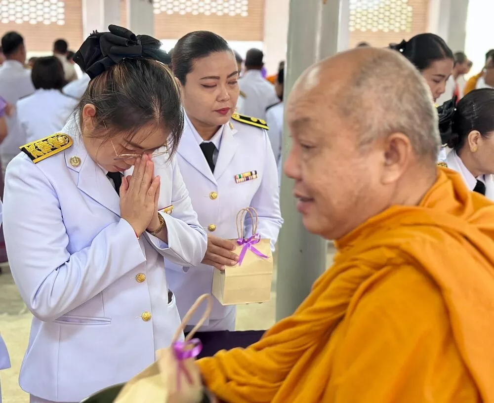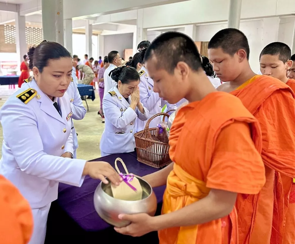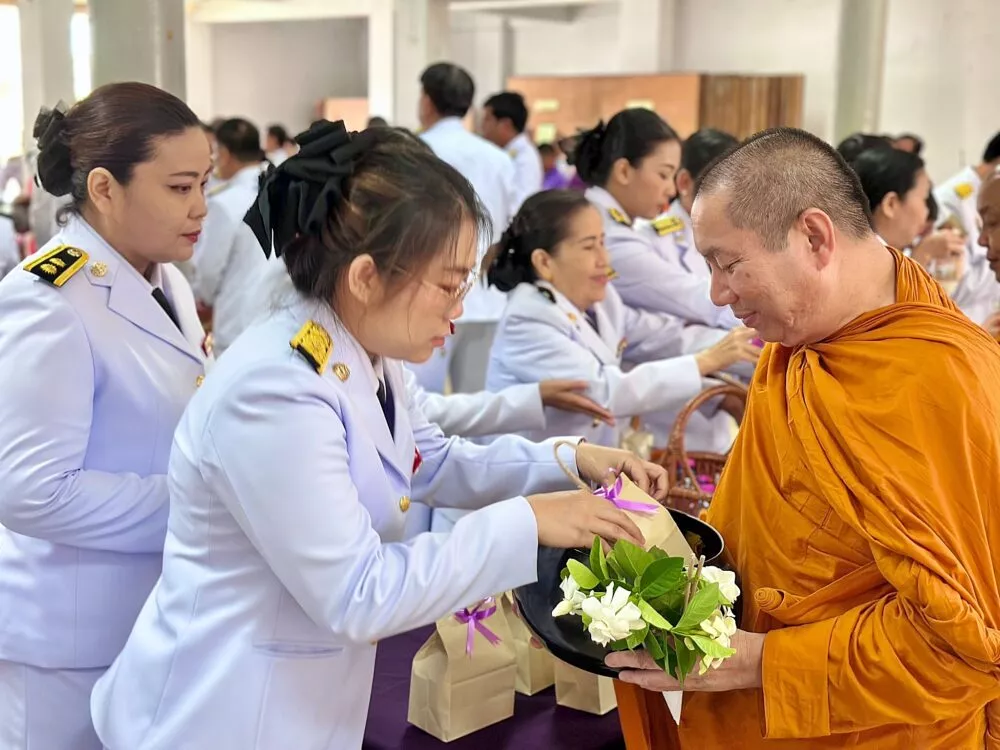 ว่าที่ร้อยตรีหญิงสุพิมล เหลืองขาว หัวหน้าฝ่ายบริหารทั่วไป นางสาวกันยกร สีแดง เจ้าพนักงานธุรการ ร่วมประกอบพิธีเจริญพระพุทธมนต์และทำบุญตักบาตรถวายเป็นพระราชกุศล เนื่องในโอกาสวันเฉลิมพระชนมพรรษา 3 มิถุนายน 2568 สมเด็จพระนางเจ้าฯ พระบรมราชินี เพื่อเป็นการแสดงความจงรักภักดีและถวายพระพรชัยมงคล และมอบหมายให้