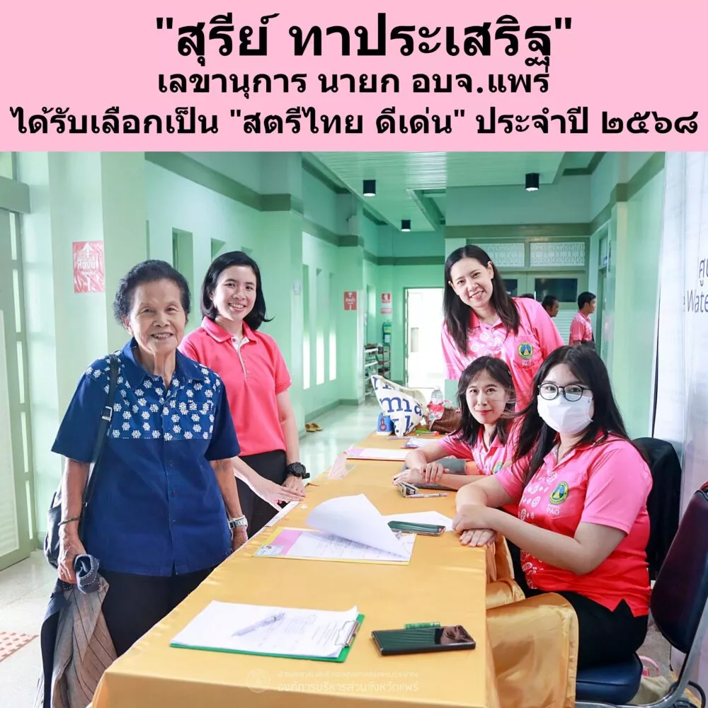 “สุรีย์ ทาประเสริฐ” เลขานุการ นายก อบจ.แพร่ ได้รับการพิจารณาจาก คณะกรรมการตัดสินและสรรหาสตรีไทยดีเด่น ประจำปี 2568 มีมติที่ประชุมฯ เห็นชอบให้เป็น “สตรีไทย ดีเด่น” ประจำปี ๒๕๖๘