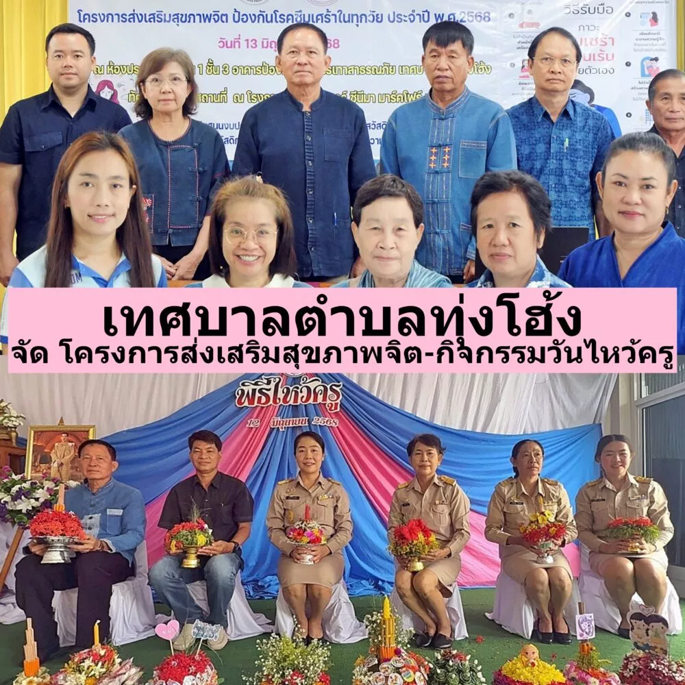 ข่าวทั่วไป “เทศบาลตำบลทุ่งโฮ้ง”จัดโครงการ”ส่งเสริมสุขภาพจิต ป้องกันโรคซึมเศร้าในทุกวัย”และกิจกรรมวันไหว้ครู พ.ศ.2568 มิถุนายน 13, 2025 admin Facebook iconFacebookLINE iconLine Post Views: 733 นายสราวุธ หมื่นโฮ้ง นายกเทศมนตรีตำบลทุ่งโฮ้ง เป็นประธานเปิด โครงการ “ส่งเสริมสุขภาพจิต ป้องกันโรคซึมเศร้าในทุกวัย” และกิจกรรมวันไหว้ครูโรงเรียนอนุบาลเทศบาลตำบลทุ่งโฮ้งฯ และศูนย์พัฒนาเด็กเล็กฯ ประจำปี พ.ศ. 2568 “ส่งเสริมสุขภาพจิต ป้องกันโรคซึมเศร้าในทุกวัย ประจำปี พ.ศ. 2568” วันศุกร์ ที่ 13 มิถุนายน 2568 เวลา 09.30 น. เป็นประธานเปิดการอบรมโครงการ “ส่งเสริมสุขภาพจิต ป้องกันโรคซึมเศร้าในทุกวัย ประจำปี พ.ศ. 2568” ณ ห้องประชุมไทยพวน 1 โดยมี นายจำรัส เสนาธรรม ประธานกองทุนสวัสดิการชุมชนเทศบาลตำบลทุ่งโฮ้ง เป็นผู้กล่าวรายงาน วิทยากรผู้บรรยายให้ความรู้ได้แก่ นางขนิษฐา วรารัตน์ พยาบาลวิชาชีพชำนาญการ ผู้อำนวยการโรงพยาบาลส่งเสริมสุขภาพตำบลทุ่งโฮ้ง นางสาวชุติมณฑ์ แรกข้าว นักพัฒนาสังคมชำนาญการ ผู้อำนวยการศูนย์บริการคนพิการจังหวัดแพร่ และ นางสาววีรญา มีไหม นิติกรศูนย์บริการคนพิการจังหวัดแพร่ เข้าร่วมด้วย วัตถุประสงค์ของการจัดโครงการนี้จัดขึ้นเพื่อลดอัตราการเกิดโรคซึมเศร้าในประชากรทุกช่วงวัย รวมทั้งเพื่อสนับสนุนให้บุคคลทุกวัยมีทักษะในการจัดการกับความเครียดและอารมณ์ที่ส่งผลต่อสุขภาพจิต กิจกรรมวันไหว้ครู วันพฤหัสบดี ที่ 12 มิถุนายน 2568 เวลา 08.30 น. นายสราวุธ หมื่นโฮ้ง นายกเทศมนตรีตำบลทุ่งโฮ้ง เป็นประธานเปิดงานกิจกรรมวันไหว้ครูโรงเรียนอนุบาลเทศบาลตำบลทุ่งโฮ้งฯ และศูนย์พัฒนาเด็กเล็กฯ ประจำปี พ.ศ. 2568 ณ ห้องประชุมโรงเรียน โดยมีนางจุฬาลักษณ์ บัวชุม ผู้อำนวยการโรงเรียนฯ กล่าวรายงานรายละเอียดของกิจกรรม ในโอกาสนี้ท่านนายกฯ ได้พบปะพูดคุยกับคุณครูและน้องๆ นักเรียน พร้อมทั้งยังให้โอวาทและคำแนะนำในเรื่องการเรียนการสอน หลังจากนั้นมีพิธีมอบเกียรติบัตรให้แก่นักเรียนที่ชนะการประกวดระบายสีและบันทึกภาพร่วมกัน