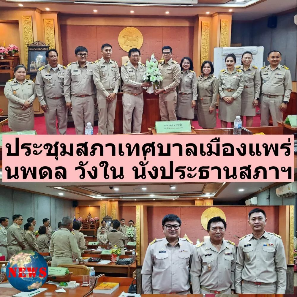 นายนพดล วังใน นั่งประธานสภาเทศบาลเมืองแพร่ นายสันติ กุณาใหม่ รองประธา่นสภาฯ และนายชาญณรงค์ สระทองอยู่ เป็นเลขานุการสภาฯ ประชุมสภาเทศบาลครั้งแรก พร้อมแจ้งกำหนดวันเวลาแถลงนโยบายต่อสภาฯของ นายสุริยา อินต๊ะนอน นายกเทศมนตรีเมืองแพร่ ในวันที่ 19 มิถุนายน 2568