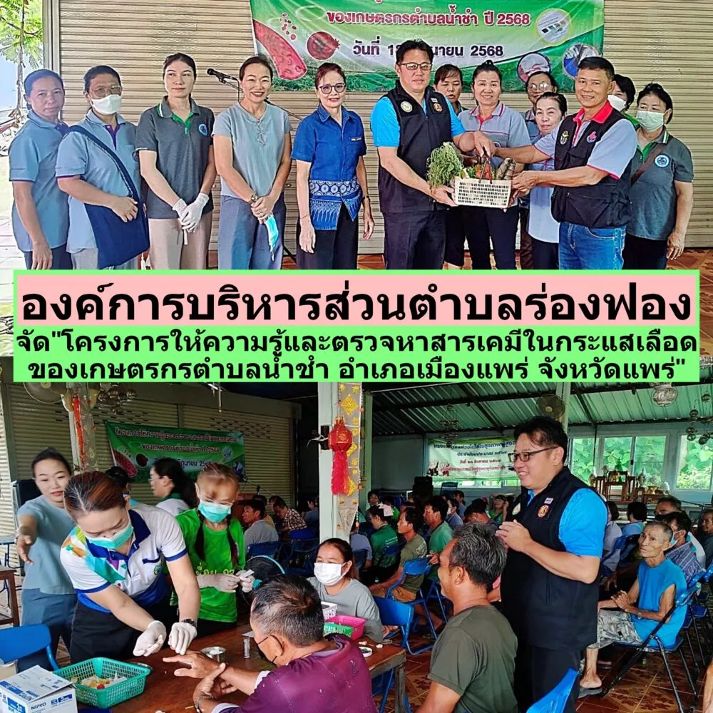 อบต.ร่องฟอง จัด”โครงการให้ความรู้และตรวจหาสารเคมีในกระแสเลือดแก่เกษตรกรของตำบลน้ำชำ” อำเภอเมืองแพร่