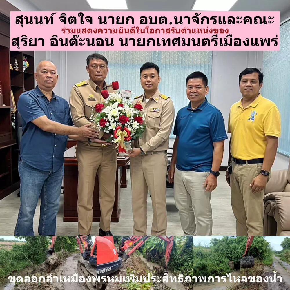 “สุนนท์ จิตใจ” นายก อบต.นาจักร แสดงความยินดีกับนายกเทศบาลเมืองแพร่ และมอบหมายให้กองช่างขุดลอกลำเหมืองพรหมเพื่อเพิ่มประสิทธิภาพการไหลของน้ำในช่วงฤดูน้ำหลาก