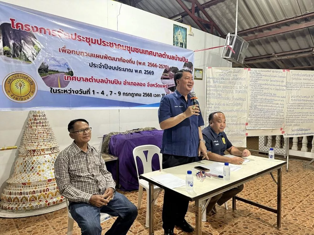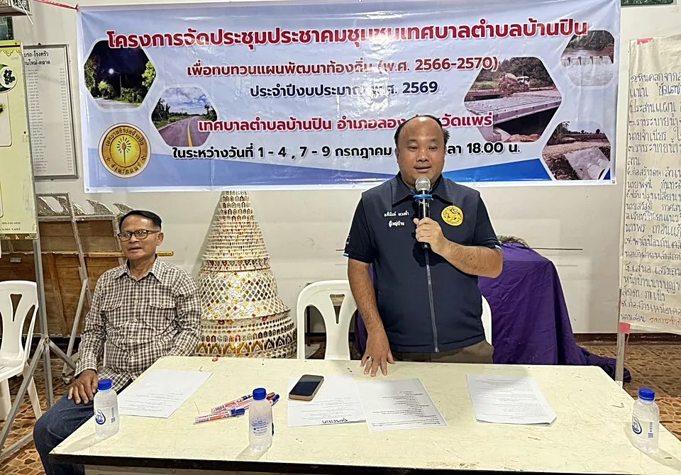 วันที่ 2 กรกฎาคม 2568 เวลา 18.00 น. นายสมศักดิ์ วงศ์หลวง นายกเทศมนตรีตำบลบ้านปิน พร้อมด้วย คณะผู้บริการ สมาชิกสภาเทศบาล หัวหน้าส่วนราชการ พนักงานเทศบาล ผู้นำชุมชน หมู่ที่ 4 เข้าร่วมประชุมประชาคมชุมชนเทศบาลฯ เพื่อทบทวนแผนพัฒนาท้องถิ่น (พ.ศ. 2566-2570) ประจำปี 2569 และทราบถึงปัญหา ความต้องการของประชาชนมาวิเคราะห์จัดทำแผนงาน/โครงการต่างๆ บรรจุในแผนพัฒนาท้องถิ่น อย่างมีประสิทธิภาพ มีการบริหารงานด้วยความโปร่งใส สามารถแก้ไขปัญหาความเดือนร้อนของประชาชนได้ตรงจุด ตรงกับความต้องการของประชาชน ภายใต้การบริหารงานงบประมาณที่มีอยู่อย่างจำกัด และมีความจำเป็นเร่งด่วนที่ต้องดำเนินการ ณ ชุมชนบ้านใหม่-ตลาด หมู่ที่ 4