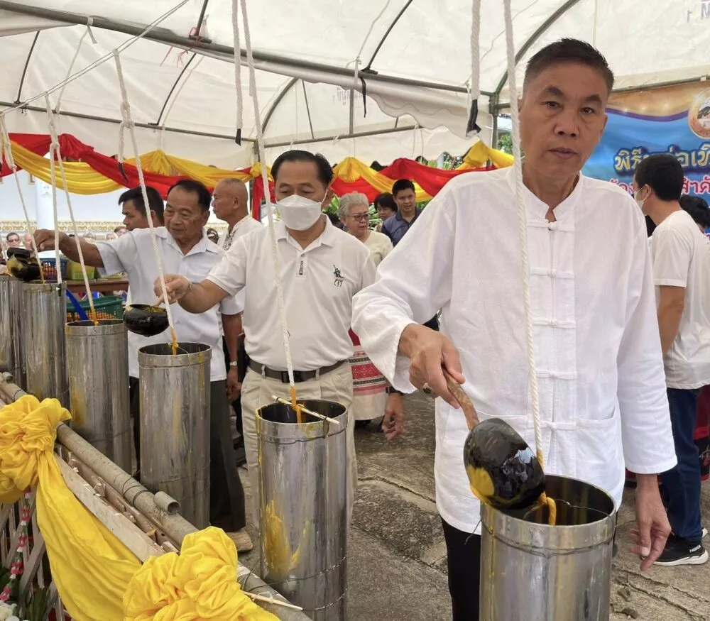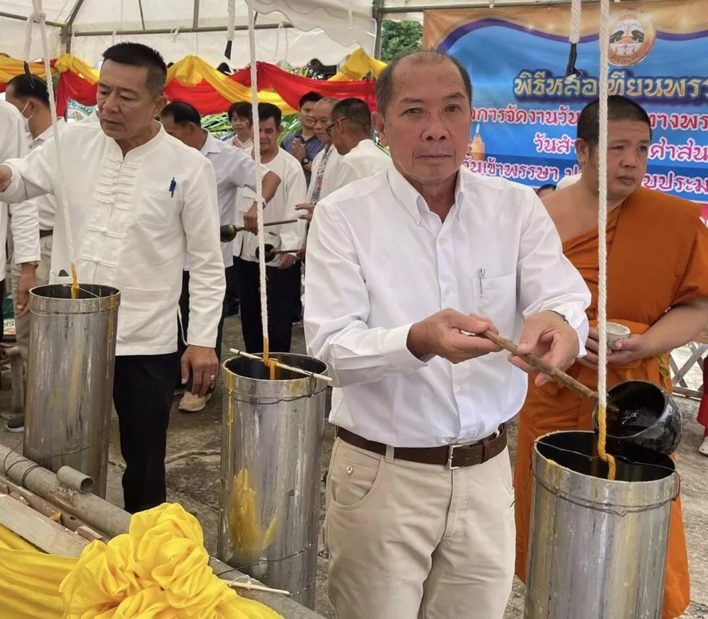 พ.ต.ท.ธงชัย เนื่องพืช นายกเทศมนตรีตำบลบ้านถิ่น พร้อมด้วย คณะ ร่วมพิธีหล่อเทียนพรรษาประจำปี 2568ภายใต้โครงการจัดงานวันสำคัญทางพระพุทธศาสนา เนื่องในวันเข้าพรรษา เพื่อส่งเสริมให้ประชาชนได้มีส่วนร่วมในกิจกรรมทางศาสนา อนุรักษ์วัฒนธรรมประเพณีอันดีงาม และทำนุบำรุงพระพุทธศาสนาให้คงอยู่คู่สังคมไทยตลอดไป