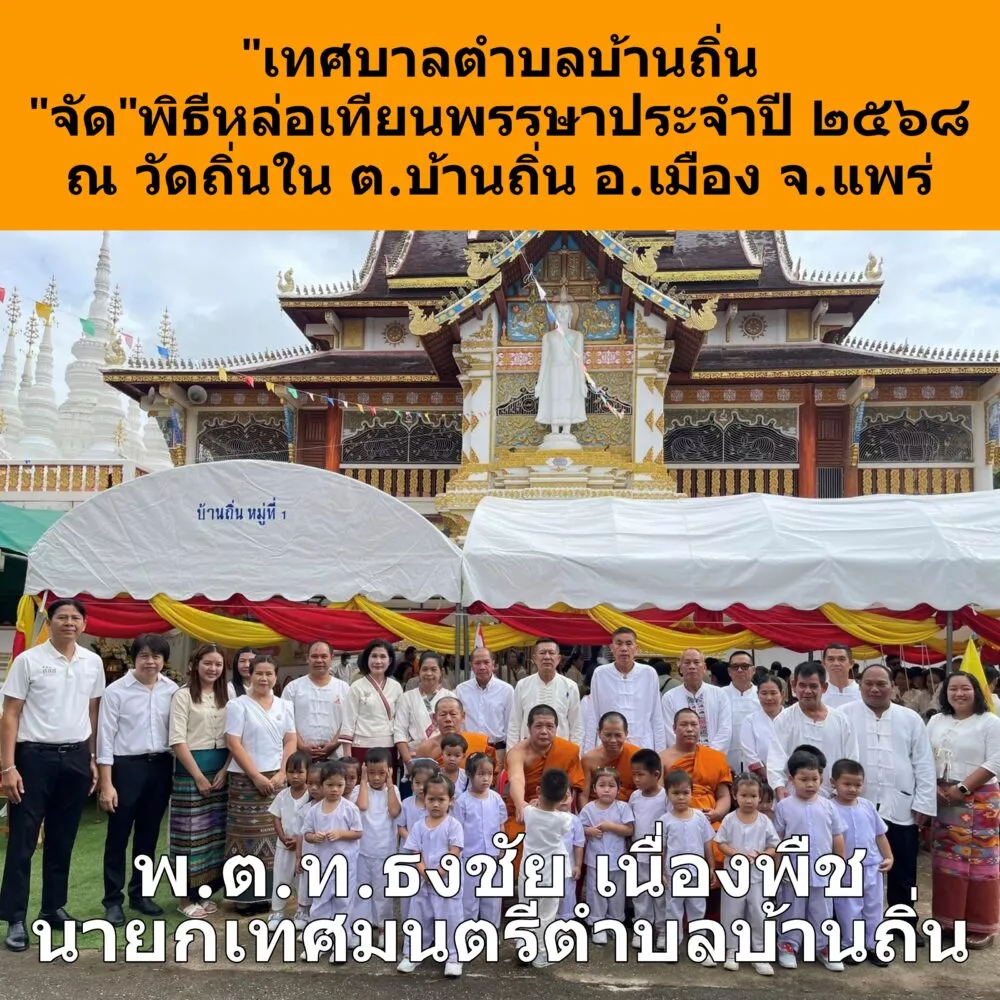 “เทศบาลตำบลบ้านถิ่น”จัด “พิธีหล่อเทียนพรรษาประจำปี 2568” ณ วัดถิ่นใน ต.บ้านถิ่น อ.เมือง จ.แพร่ พุทธศาสนิกชนร่วมพิธีจำนวนมาก