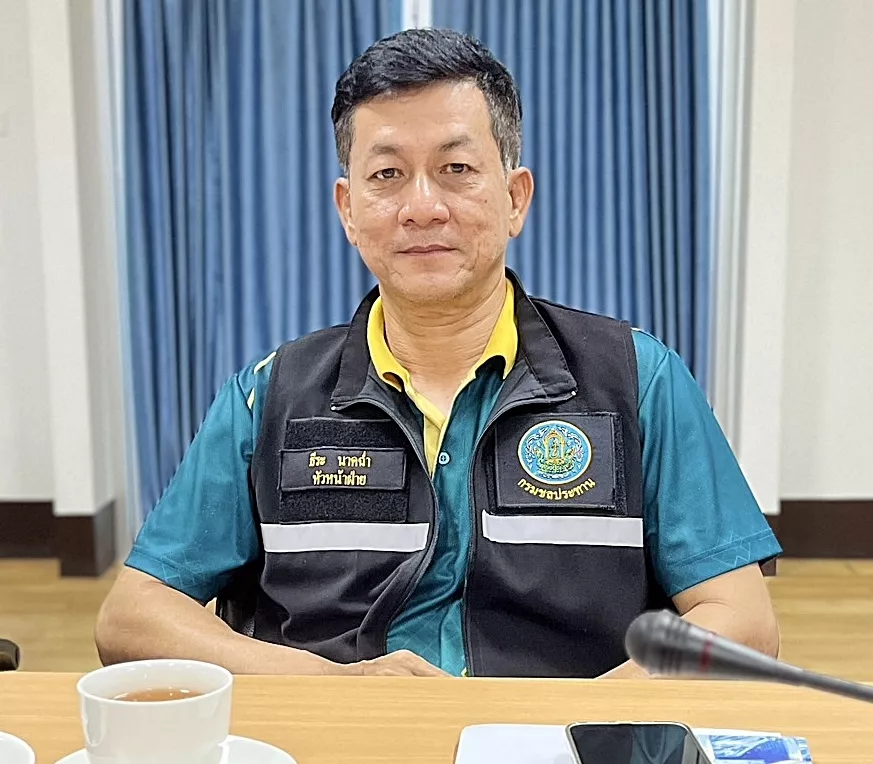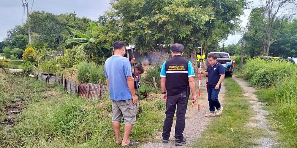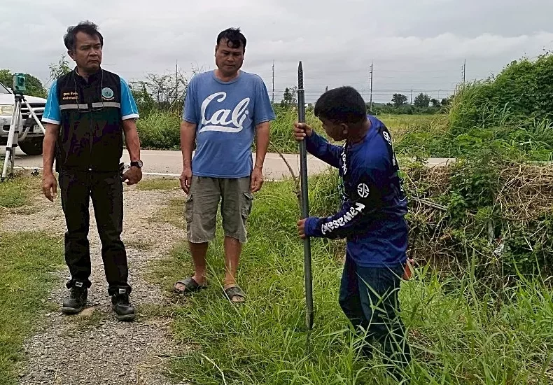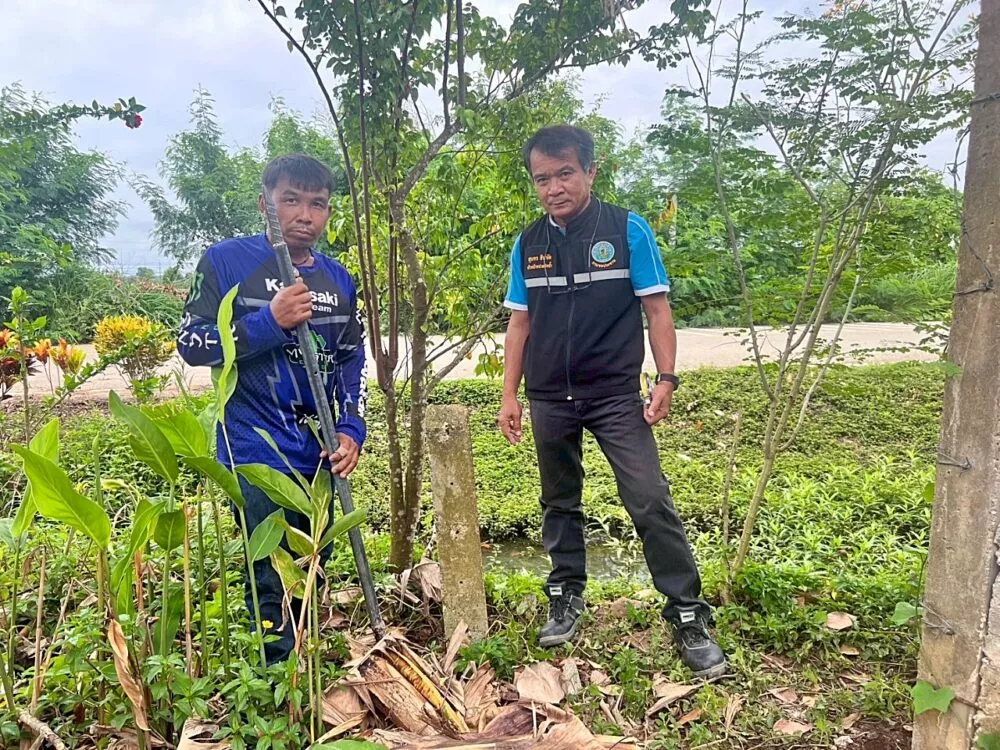 นายวิโรจน์ พวงทอง หัวหน้าฝ่ายส่งน้ำและบำรุงรักษาที่ 2 ให้ นายสุนทร อินขัด หัวหน้าหน่วยส่งน้ำที่ 5 ลงพื้นที่การระวังชี้แนวเขต