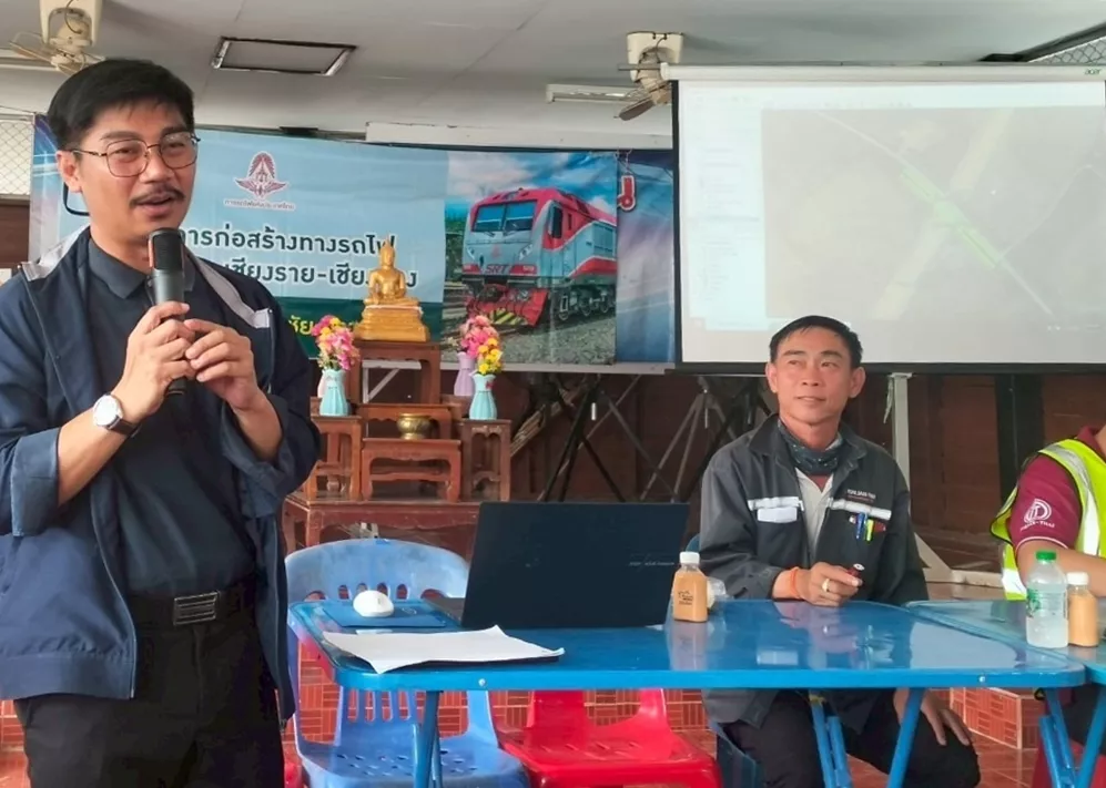 นายวิโรจน์ พวงทอง หัวหน้าฝ่ายส่งน้ำและบำรุงรักษาที่ 2 นายกิตติศักดิ์ จากภัย นายช่างชลประทาน เข้าร่วมประชุมหารือเพื่อนำเสนอรูปแบบการเบี่ยงแนวคลองชลประทาน (คลอง 10R-LMC) ชั่วคราว เพื่อดำเนินการก่อสร้างท่อเหลี่ยมคอนกรีตเสริมเหล็ก กม.575+442 ในพื้นที่เทศบาลตำบลหนองม่วงไข่ ที่ โครงการก่อสร้างทางรถไฟ สายเด่นชัย – เชียงราย – เชียงของ สัญญาที่ 1 ช่วงเด่นชัย – งาว และมอบหมายให้