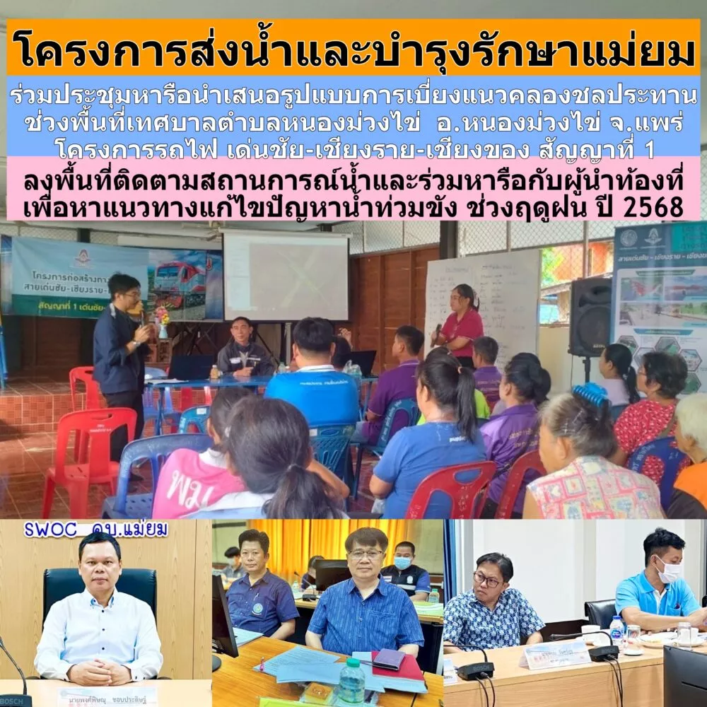 “คบ.แม่ยม” ร่วมประชุมหารือนำเสนอรูปแบบการเบี่ยงแนวคลองชลประทาน ช่วงพื้นที่เทศบาลตำบลหนองม่วงไข่ โครงการรถไฟ เด่นชัย-เชียงราย-เชียงของ และร่วมหารือกับผู้นำท้องที่เพื่อแก้ไขปัญหาน้ำท่วมขังในช่วงฤดูฝน