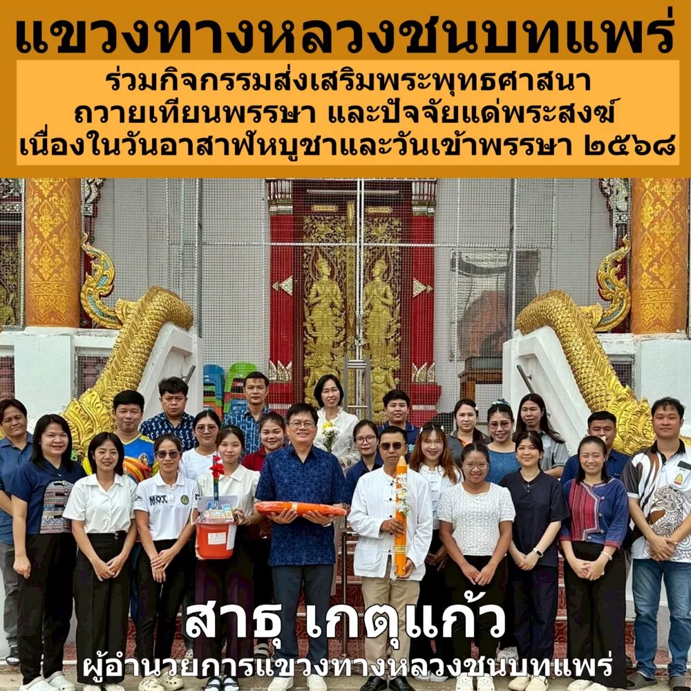 ข่าวแพร่ “แขวงหลวงชนบทแพร่”ร่วมกิจกรรมส่งเสริมพระพุทธศาสนา ถวายเทียนพรรษา และปัจจัยแด่พระสงฆ์ เนื่องในวันอาสาฬหบูชาและวันเข้าพรรษา ๒๕๖๘ กรกฎาคม 9, 2025 admin Facebook iconFacebookLINE iconLine Post Views: 474 นายสาธุ เกตุแก้ว ผู้อำนวยการแขวงหลวงชนบทแพร่ พร้อมด้วยเจ้าหน้าที่ในสังกัดสำนักงานแขวงทางหลวงชนบทแพร่ ถวายเทียนพรรษา และปัจจัยแด่พระสงฆ์ เนื่องในวันอาสาฬหบูชาและวันเข้าพรรษา ประจำปี พ.ศ. 2568 เพื่อเป็นการส่งเสริมพระพุทธศาสนา น้อมรำลึกถึงคุณรัตนตรัย และสืบสานประเพณีอันดีงามของไทย วันอังคารที่ 8 กรกฎาคม 2568 นายสาธุ เกตุแก้ วผู้อำนวยการแขวงทางหลวงชนบทแพร่ ผอ.กลุ่ม/ส่วน และเจ้าหน้าที่ในสังกัดสำนักงานแขวงทางหลวงชนบทแพร่ ถวายเทียนพรรษา และปัจจัยแด่พระสงฆ์ เนื่องในวันอาสาฬหบูชาและวันเข้าพรรษา ประจำปี พ.ศ. 2568 เพื่อเป็นการส่งเสริมพระพุทธศาสนา น้อมรำลึกถึงคุณรัตนตรัยและสืบสานประเพณีอันดีงามของไทย โดยมี ณ วัดน้ำชำ ตำบลน้ำชำ อำเภอเมืองแพร่ จังหวัดแพร่
