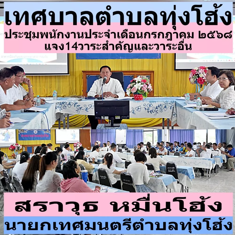 วันพุธ ที่ 9 กรกฎาคม 2568 เวลา 13.30 น. นายสราวุธ หมื่นโฮ้ง นายกเทศมนตรีตำบลทุ่งโฮ้ง เป็นประธานเปิดการประชุมพนักงานประจำเดือนกรกฎาคม 2568 ณ ห้องประชุมไทยพวน 1 โดยวาระในที่ประชุมประกอบด้วย