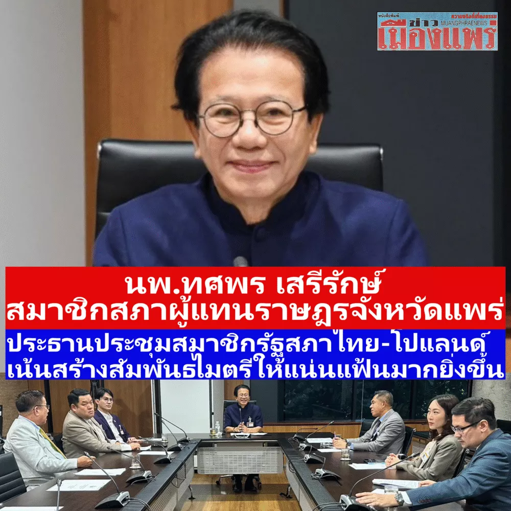นายแพทย์ทศพร เสรีรักษ์ ประธานคณะกรรมการบริหารกลุ่มมิตรภาพสมาชิกรัฐสภาไทย-โปแลนด์ เป็นประธานการประชุมคณะกรรมการบริหารกลุ่มมิตรภาพฯ ครั้งที่ 1/2568 เพื่อศึกษาข้อมูลสิ่งที่น่าสนใจของประเทศโปแลนด์ที่น่าควรศึกษา ในที่ประชุมยังเน้นการเสริมสร้างสัมพันธไมตรี ระหว่างสองประเทศ ให้มั่นคงแน่นฟ้นมากยิ่งขึ้น