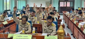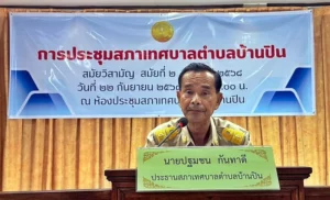 นายสมศักดิ์ วงศ์หลวง นายกเทศมนตรีตำบลบ้านปิน และคณะ ประชุมสภาเทศบาลตำบลบ้านปิน สมัยวิสามัญ สมัยที่ 2 ประจำปี 2568