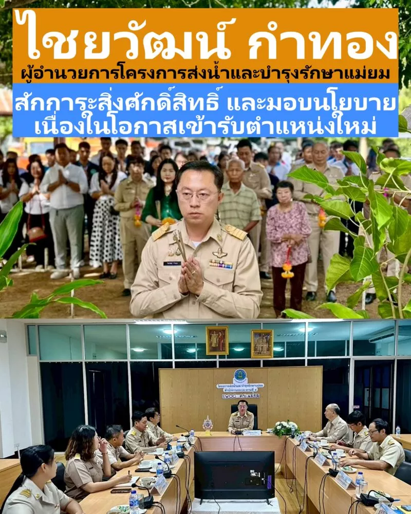 ไชยวัฒน์ กำทอง ผู้อำนวยการโครงการส่งน้ำและบำรุงรักษาแม่ยม สักการะสิ่งศักดิ์สิทธิ์ และมอบนโยบาย เนื่องในโอกาสเข้ารับตำแหน่งใหม่