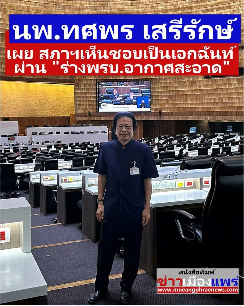 สส.นพ.ทศพร เสรีรักษ์ เผย อากาศจะสะอาดได้ต้องบังคับใช้ให้เป็นไปตามกฎหมาย เพื่อทำให้เมืองไทยมีอากาศสะอาดขณะที่ สภาผู้แทนราษฎร เห็นชอบ”ร่าง พ.ร.บ. อากาศสะอาด” ด้วยมติเอกฉันท์ 308 เสียง