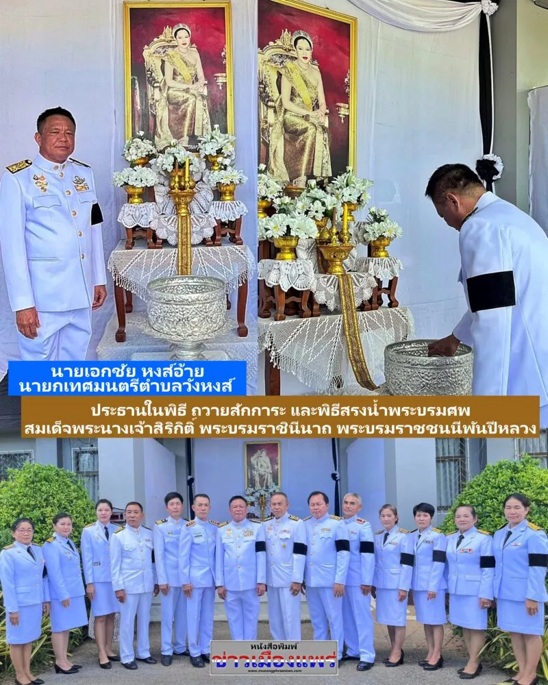 วันที่ 26 ตุลาคม 2568 นายเอกชัย หงส์อ้าย นายกเทศมนตรีตำบลวังหงส์ ประธานในพิธีถวายสักการะและพิธีสรงน้ำพระบรมศพ เบื้องหน้าพระฉายาลักษณ์สมเด็จพระนางเจ้าสิริกิติ์ พระบรมราชินีนาถ พระบรมราชชนนีพันปีหลวง พร้อมลงนามแสดงความไว้อาลัยฯ