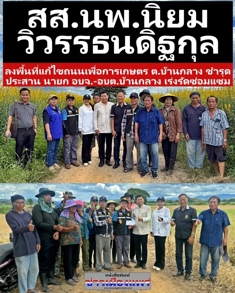 สส.นพ.นิยม วิวรรธนดิฐกุล ลงพื้นที่แก้ไขถนนเพื่อการเกษตร ต.บ้านกลาง อ.สอง จ.แพร่ ชำรุด ประสาน นายก อบจ.-อบต.บ้านกลางเร่งรัดซ่อมแซม