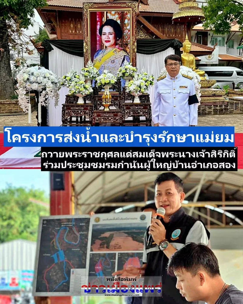 วันศุกร์ที่ 7 พฤศจิกายน 2568 เวลา 07.30 น. นายไชยวัฒน์ กำทอง ผู้อำนวยการโครงการส่งน้ำและบำรุงรักษาแม่ยม มอบหมายให้ นายจีระศักดิ์ ปัญญาดิษวงศ์ หัวหน้าฝ่ายวิศวกรรม ร่วมการจัดกิจกรรม เพื่อถวายเป็นพระราชกุศลแด่สมเด็จพระนางเจ้าสิริกิติ์ พระบรมราชชนนีพันปีหลวง พิธีทำบุญตักบาตรถวาย พระราชกุศลแด่สมเด็จพระนางเจ้าสิริกิติ์ พระบรมราชินีนาถ พระบรมราชชนนีพันปีหลวง บำเพ็ญกุศลและแสดงความอาลัย ในวาระครบ 15 วัน (ปัณรสมวาร) แห่งการสวรรคต